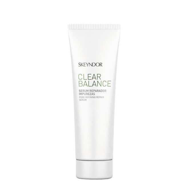 Skeyndor Clear Balance Pore Refining Repair Serum is een serum speciaal voor de vette huid, die neigt naar acne. Dit serum heeft een speciale olievrije formule, die uitermate geschikt is voor een glimmende, vette huid. De poriën worden kleiner en het huidherstel verbetert, waardoor ook littekens beter genezen en oneffenheden verminderen.